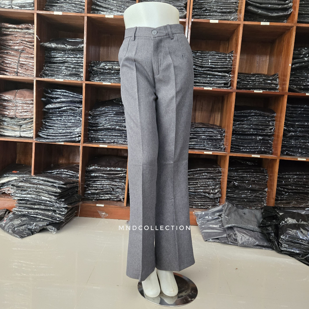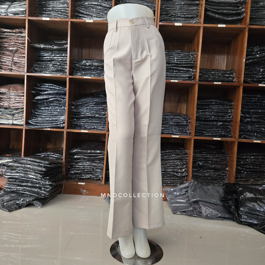 Kylie Pants Celana Kerja Cutbray Kantoran Wanita Model Kancing Resleting S - JUMBO