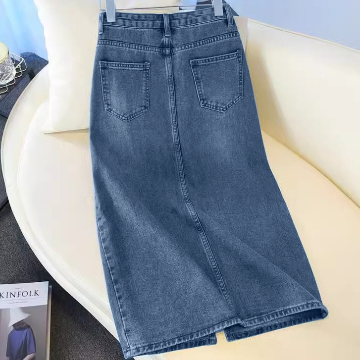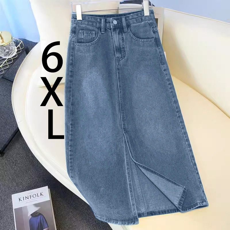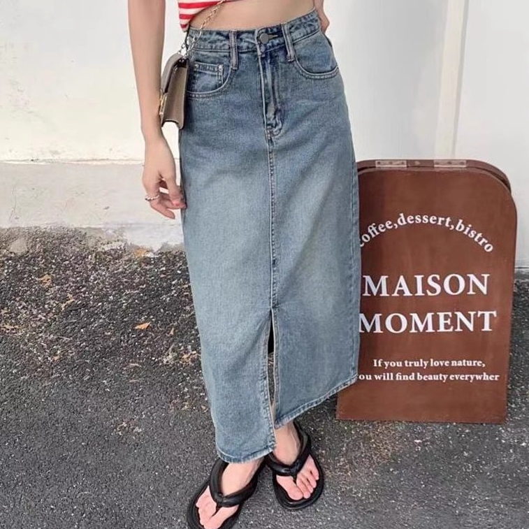 meissi.id Rok Jeans Wanita Jumbo Rok Jeans Korean Style Rok Denim Panjang A Line High Waist Rok Jeans Belah Depan Midi O