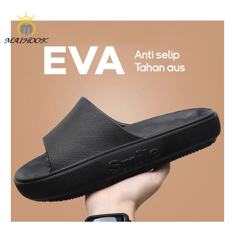MAIHOOK Sandal Selop Pria Polos Empuk Karet EVA Kekinian Dewasa Cowok Sandal Pria Keren Murah Casual Flats Murah Gratis
