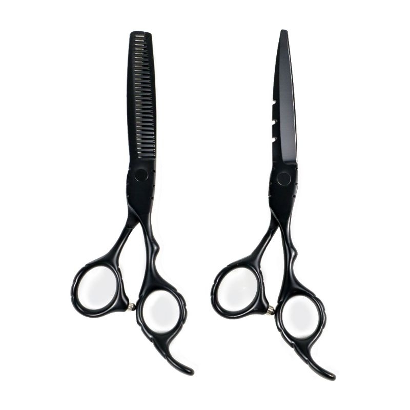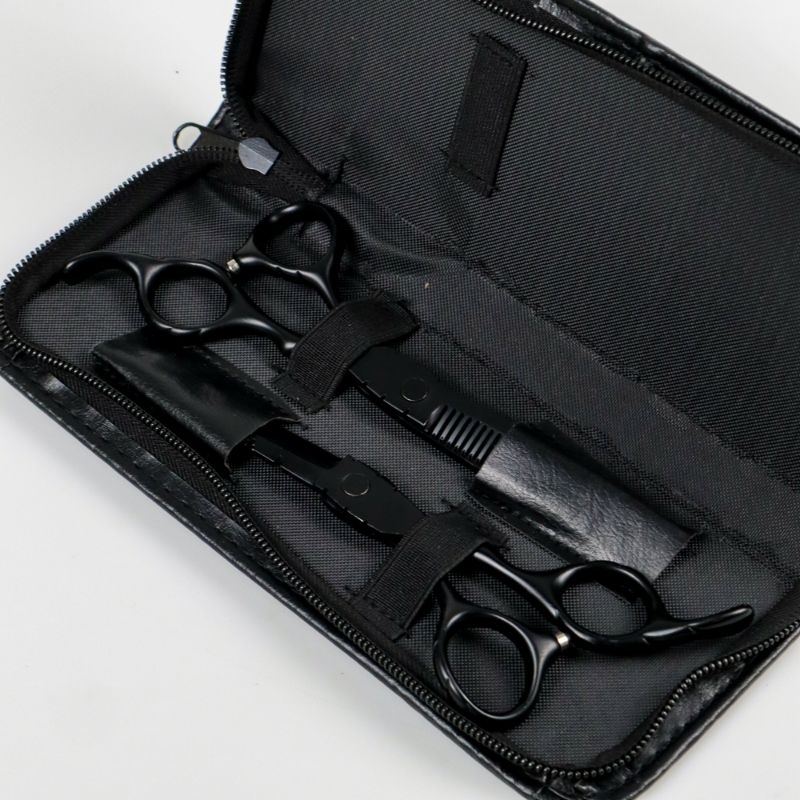 Gunting Potong Rambut Set Mr Tiger BLACK Stainless 6 inch el Kasho Penipis Sasak Flat Barbershop Salon Pangkas Rambut Fu