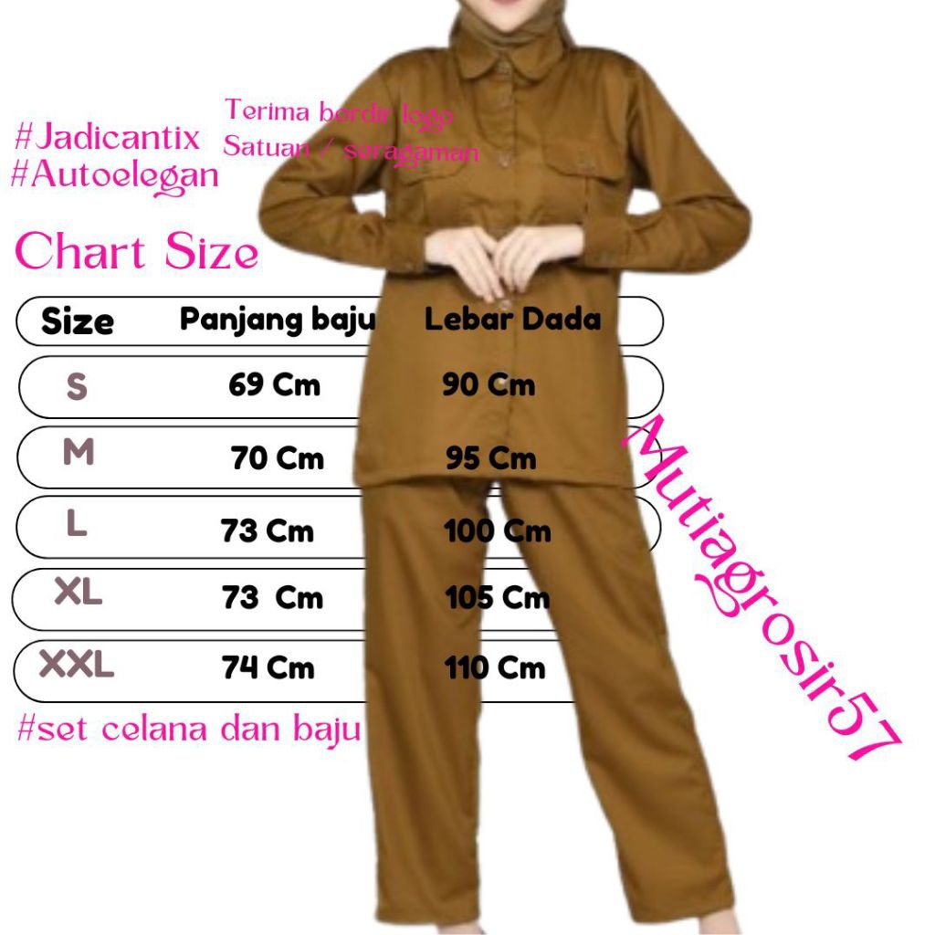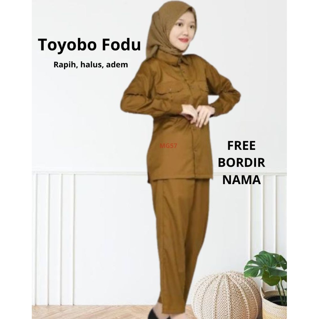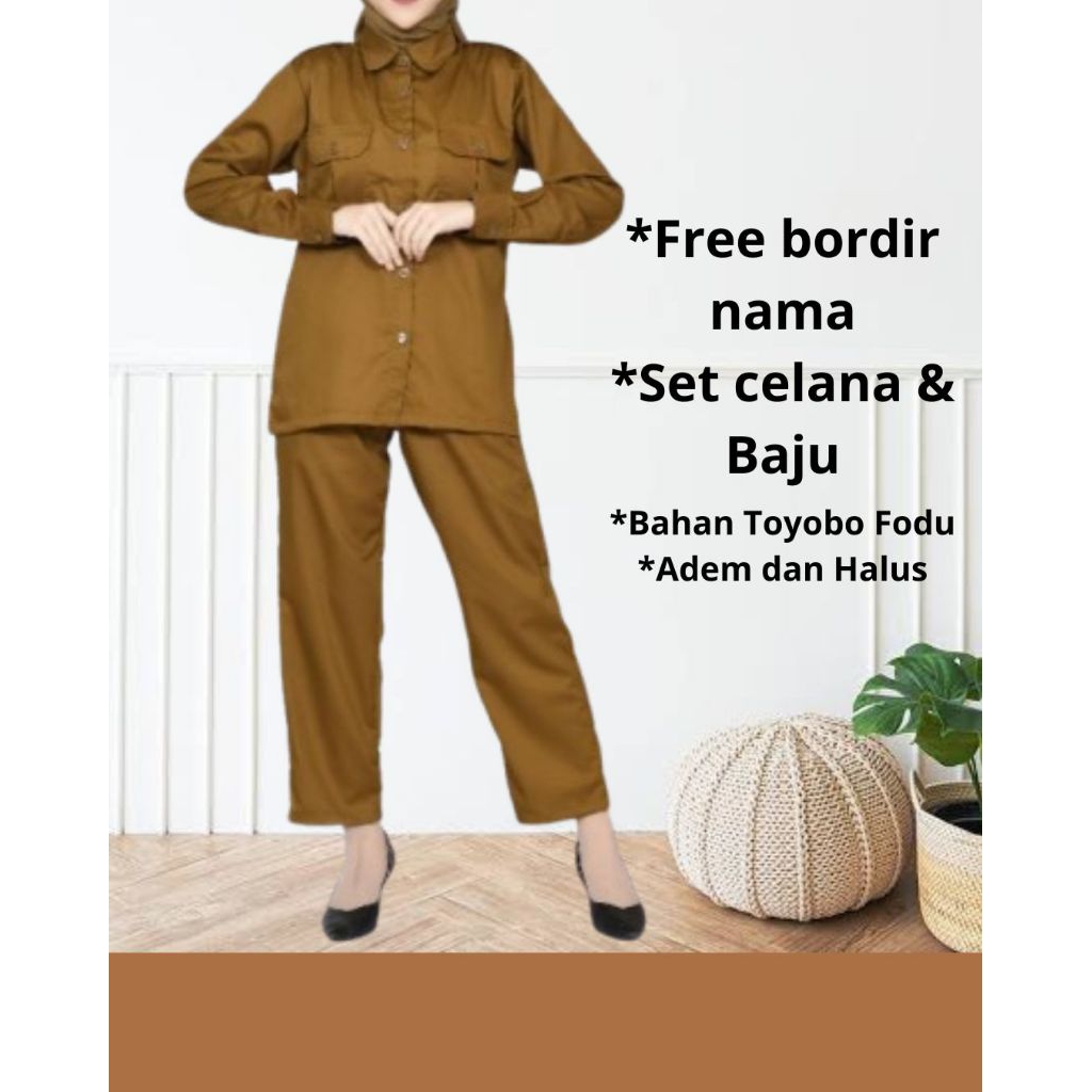 Baju Seragam khaki PNS setelan kheki wanita slimfit pemda guru perawat free nama
