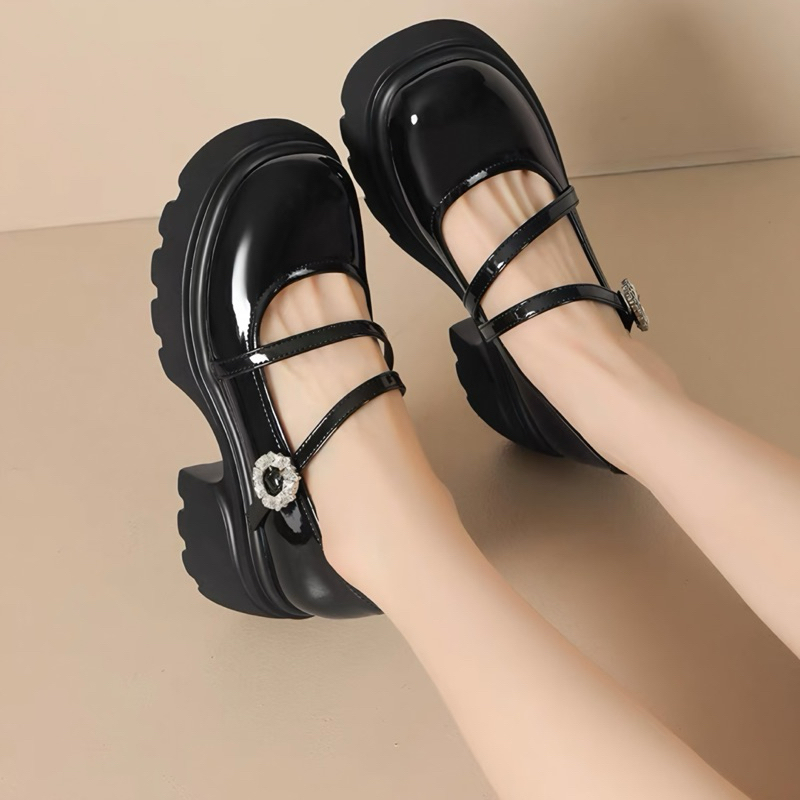 Sepatu Pantofel Kerja Wanita Gita Hitam Gesper Tinggi 5 cm Docmart Maryjane Shoes Fashion Koreaan 1880 Bisa