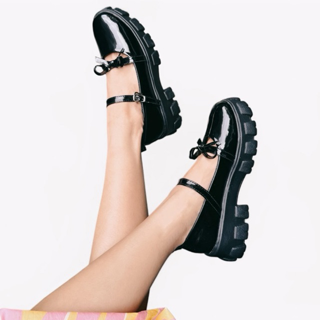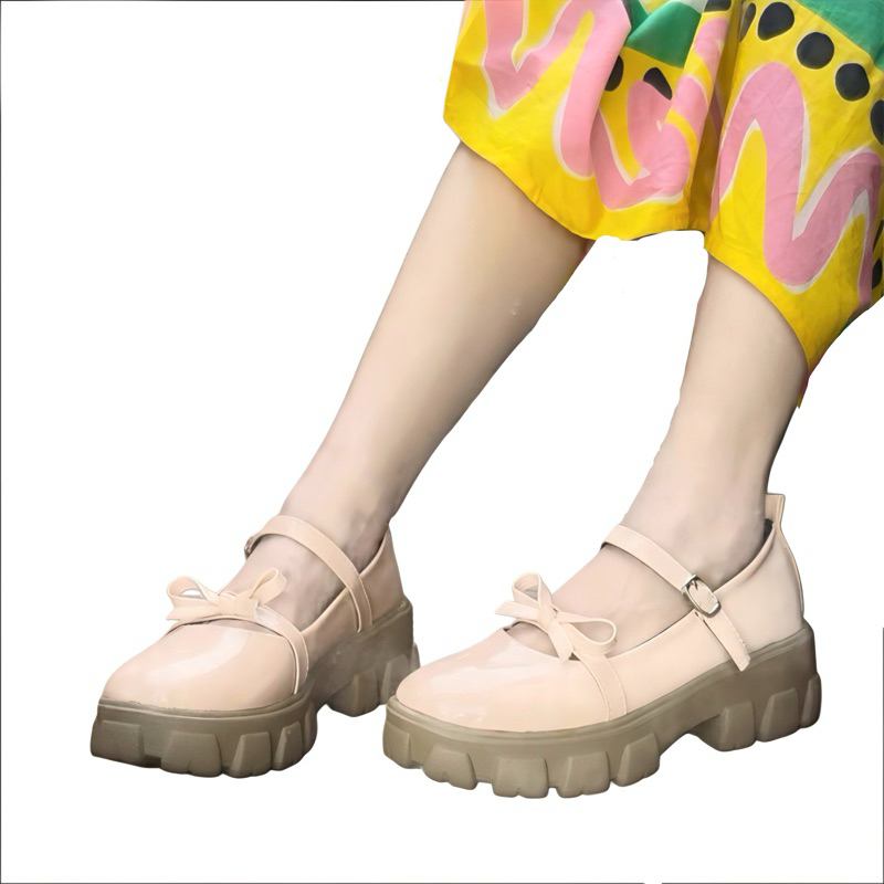 Sepatu Mary Jane Wanita Vior Platform Tali Strap Gesper 087 Pantofel Shoes Kerja Docmart Cewek Hak Datar 5 cm Premium Qu