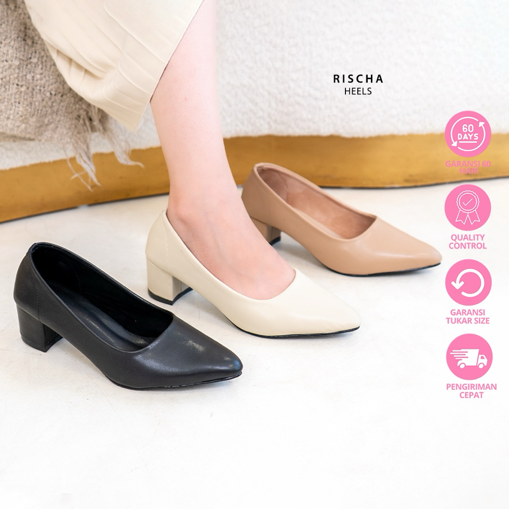 Bellashoesjkt Rischa Pantofel Hak 5cm Sepatu Kantor Heels Wanita