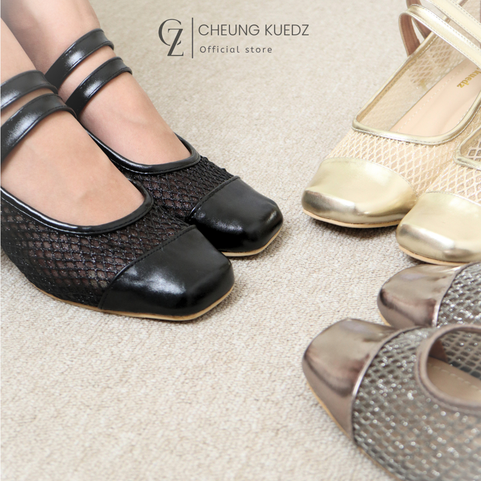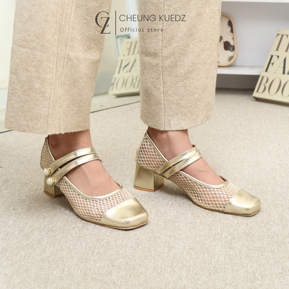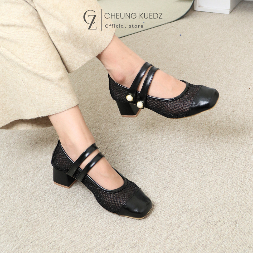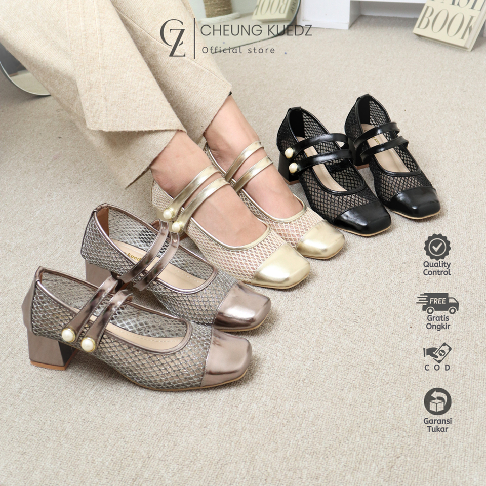 Cheung Kuedz VAMELLA Sepatu Hak Tahu Wanita Model Brukat Bahan Brukat Jaring Tinggi Hak 5Cm Sol Karet Anti Licin Shoes P