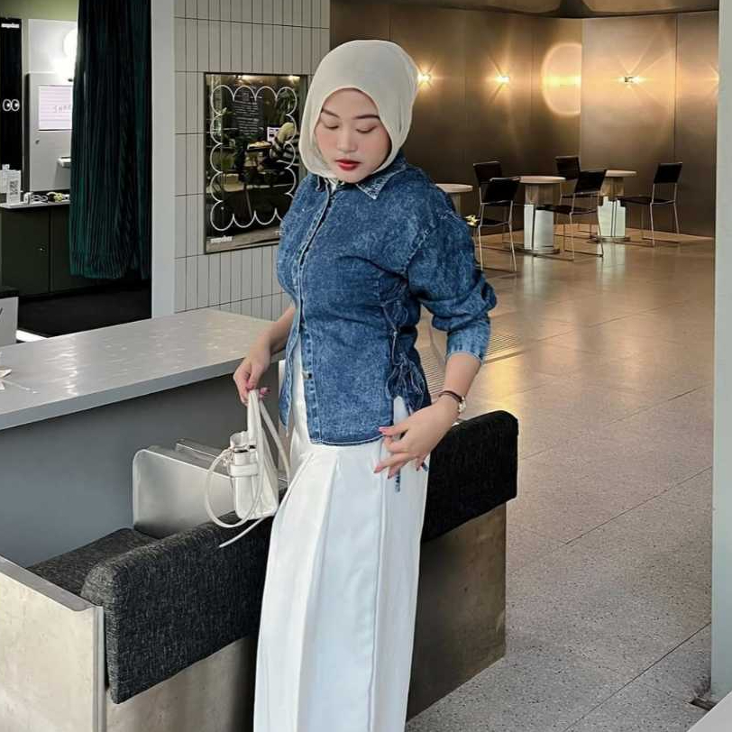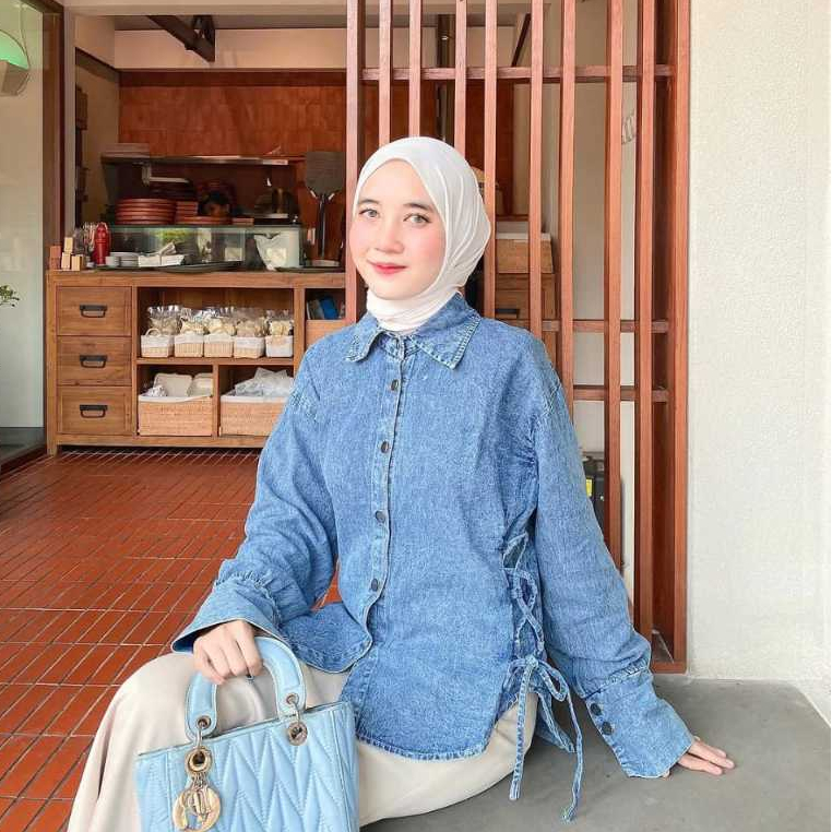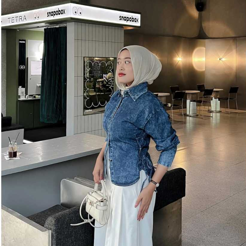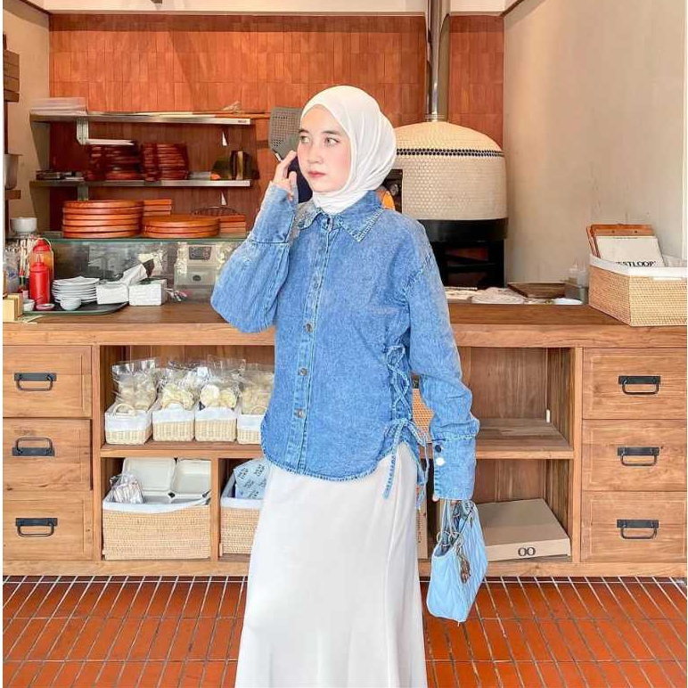 [Star] Terbaru Pola Wear Kemeja Jeans Wanita Wispie Korean Style Blouse Denim BKK Atasan Slim Fit Liora