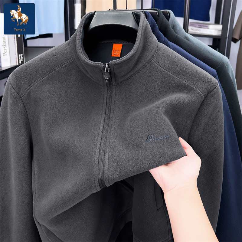 Tamp-X Oversize Jacket Pria Leher Berdiri Lengan Panjang Casual Korean Style Tebal Corduroy Zipper Jaket Outer