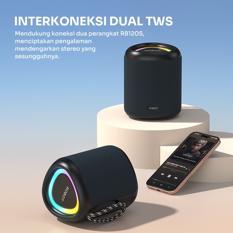 ROBOT Speaker Bluetooth Portabel 5.3 15W Super Bass 78mm with RGB Light Speaker Waterproof IPX7 RB120S Original - Garans