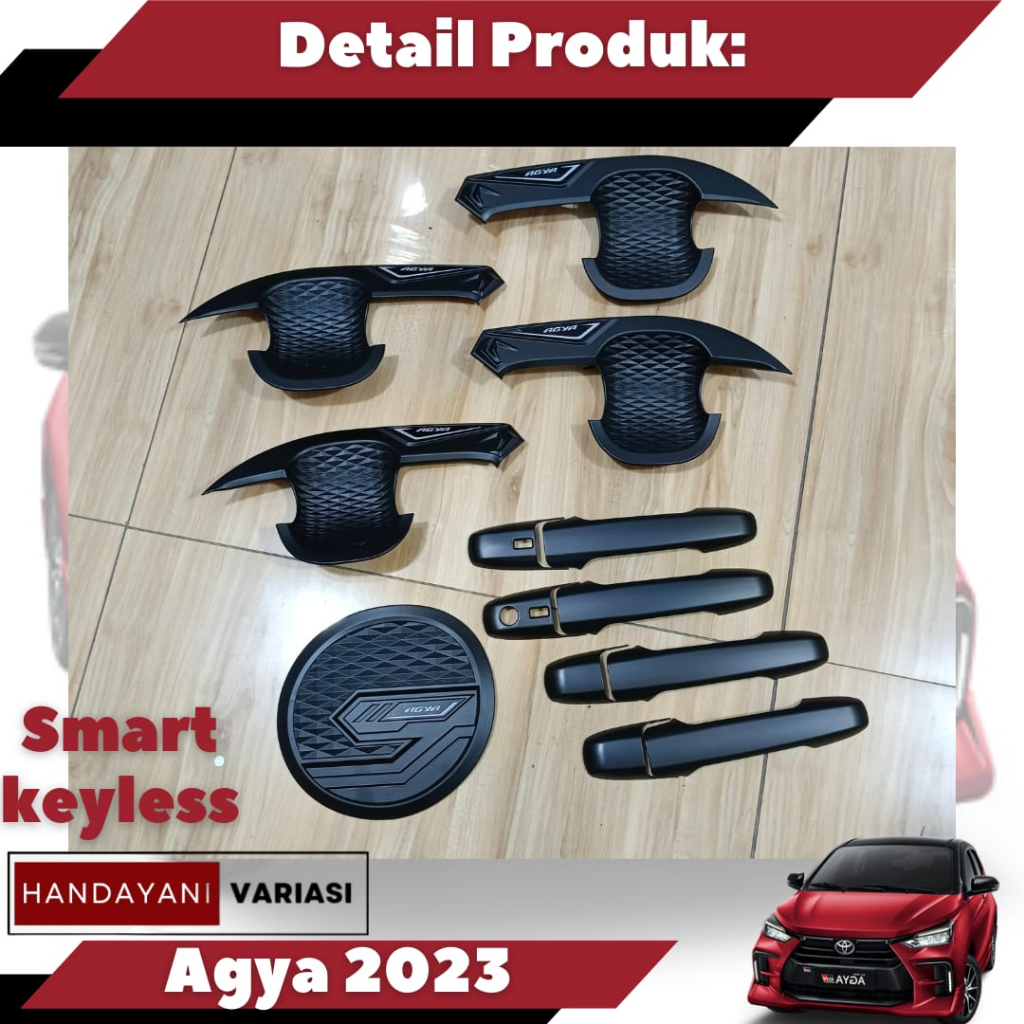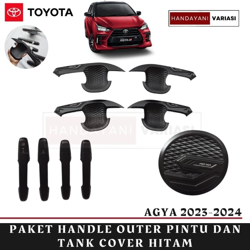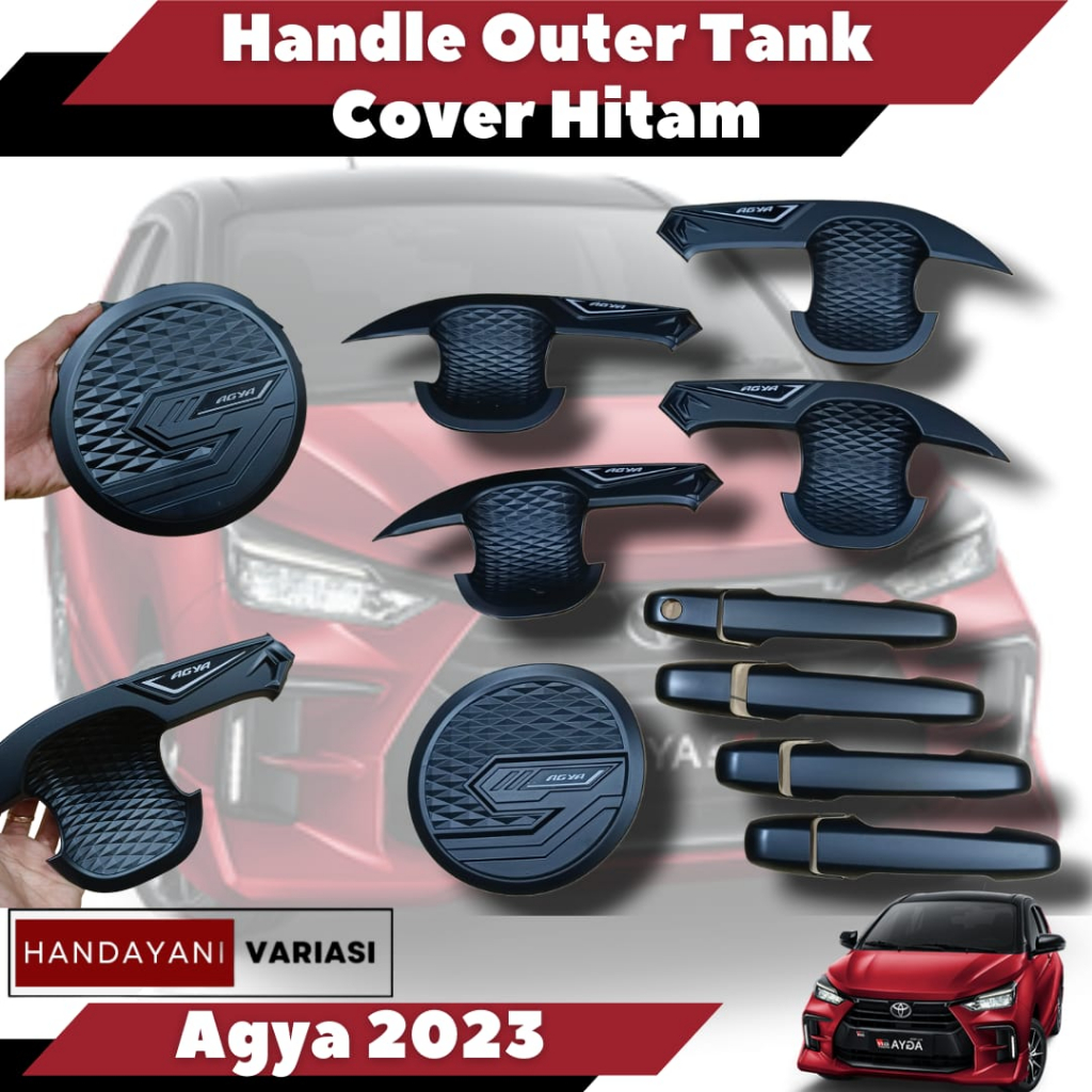 TERLARIS Paket Handle Door Outer Pintu Tank Cover Toyota Agya 2023 Motif Trapesium Hitam Doff