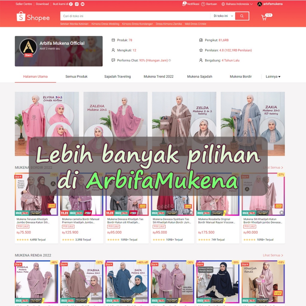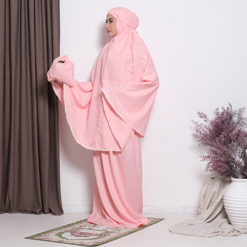 Full Set Mukena + Sajadah Syakila D3W4SA Travel Series Katun Polos Renda Arbifa