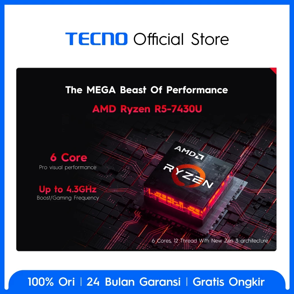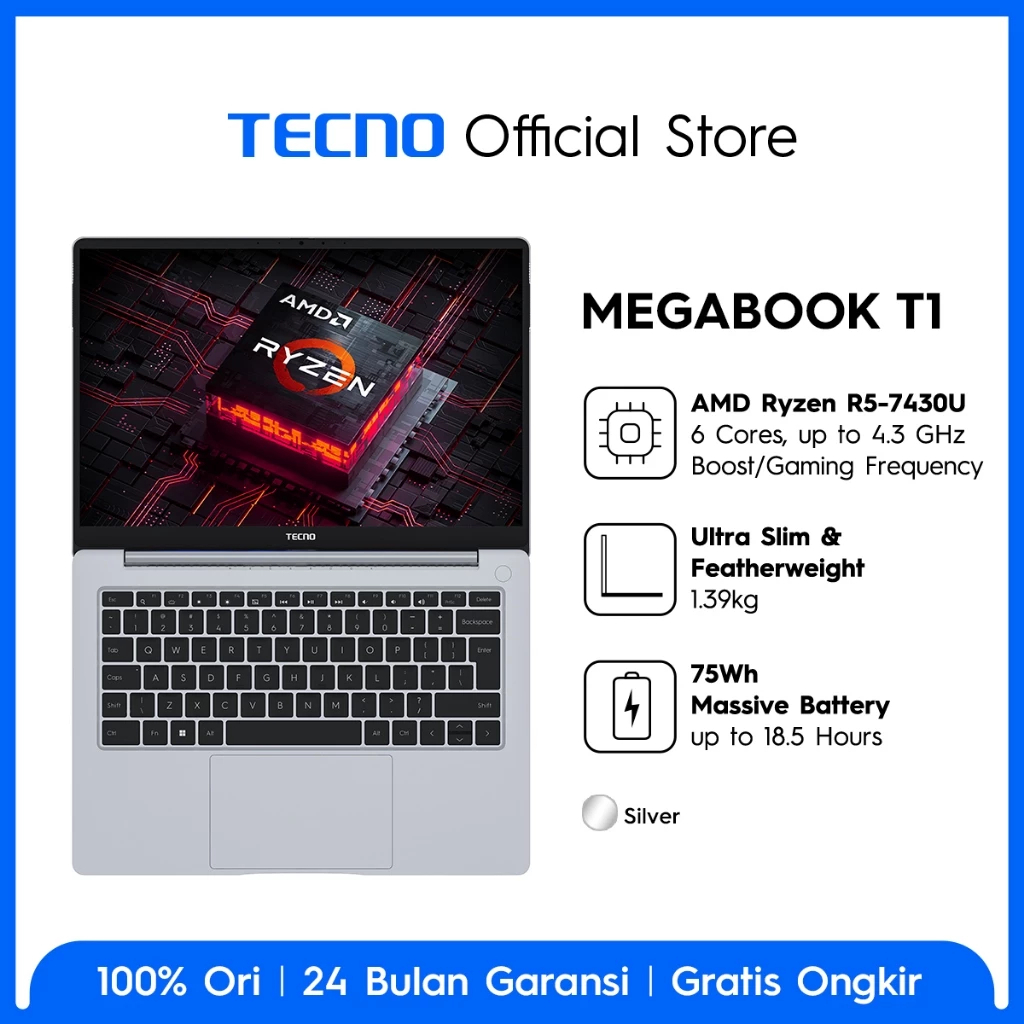 TECNO MEGABOOK T1 14 RYZEN 5 7430 16GB 512GB W11 14.0WUXGA 100SRGB 75WH 1.39KG 2Y SLV
