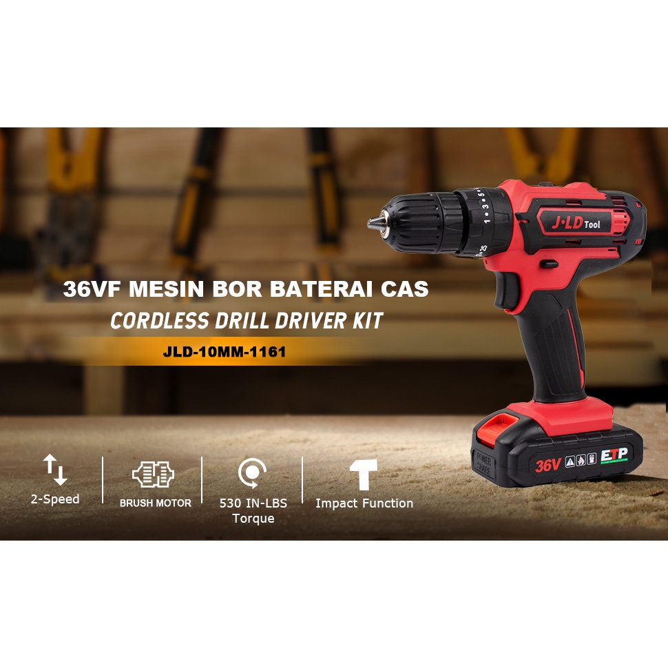 36vf Mesin bor 2baterai cas JLD 10mm bor listrik murah bor tangan baterai besi tembok Beton kayu