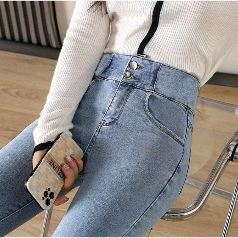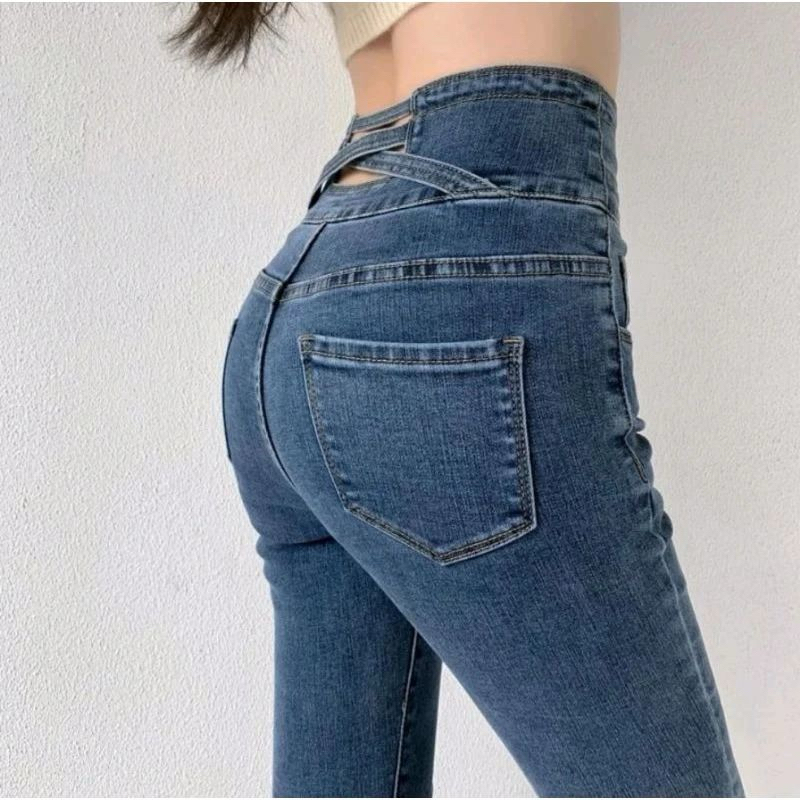 Cassandra - Celana Jeans Strech Pensil Silang Super Premium Wanita Highwaist Skinny Jeans Terbaru Kekinian