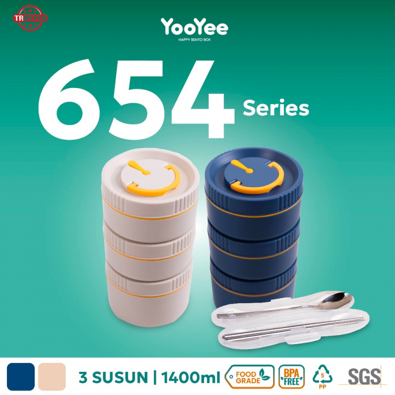 Yooyee 654 Kotak Makan Rantang 3 Susun Set dengan Tas dan Alat Makan