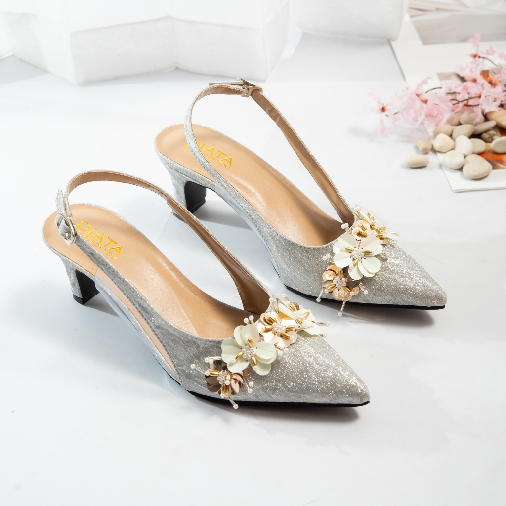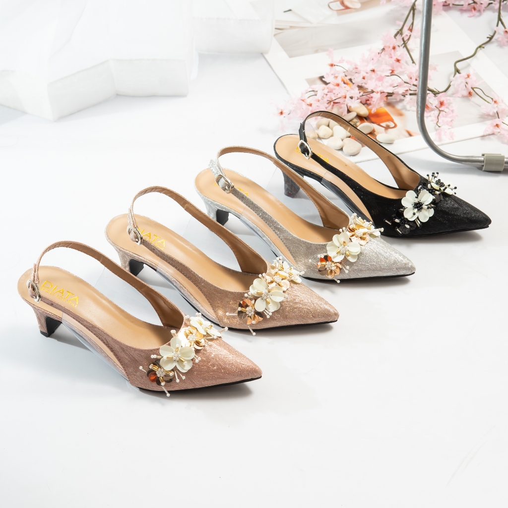 DIATA Arsya Sepatu Pesta Wanita Mules Hak 5cm Kondangan Elegan Mote Style Korea