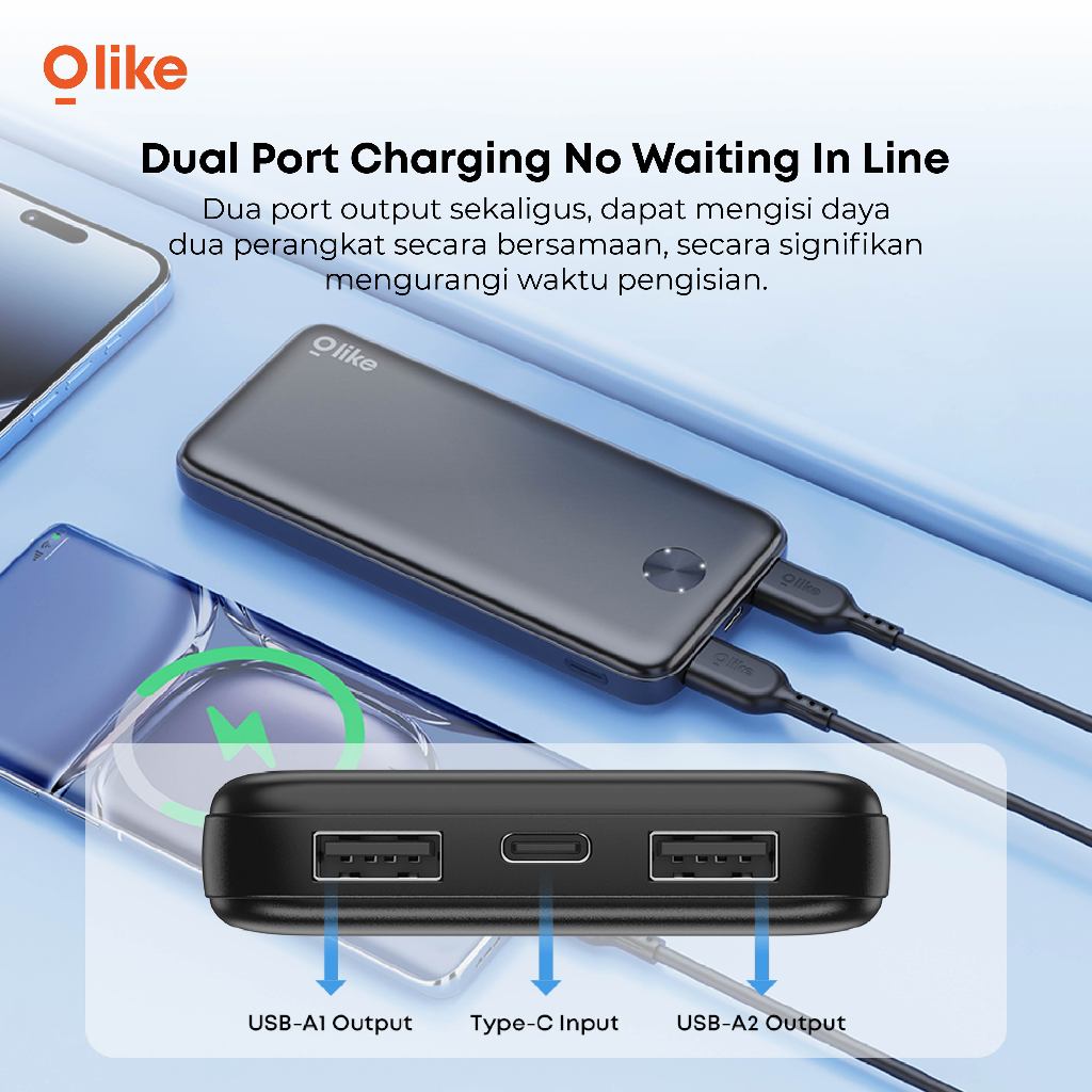 [TERSERTIFIKASI CCC] Olike Powerbank CCC Iphone T170 -1W 10.000 mAh Fast Charging 2.1A Dual Port USB Slim Low Temperature Charging
