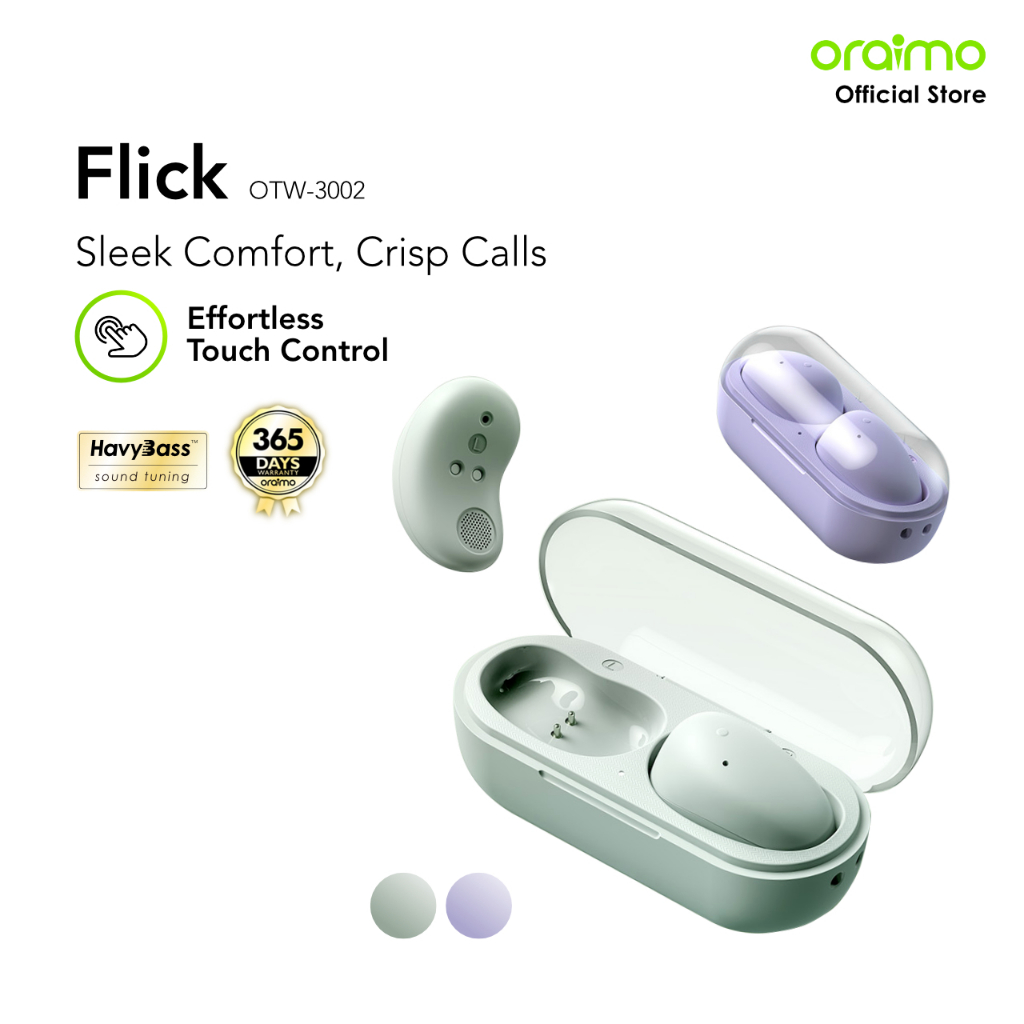 [Exclusive Kyanavara] oraimo Flick OTW-3002 True Wireless Stereo Bluetooth Baterai Tahan Lama Headset Earphone Tahan Air