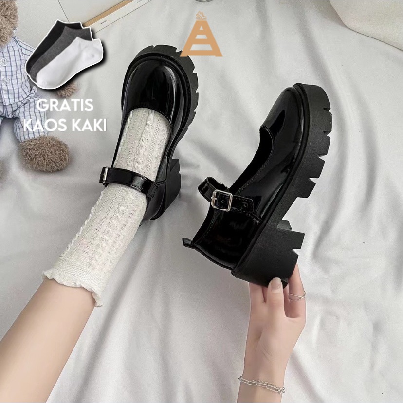 AS Sepatu Loafers Gesper Wanita Sepatu Oxford Pentofel Perempuan Sepatu Slip On Cewek Hitam Shoes Sandal