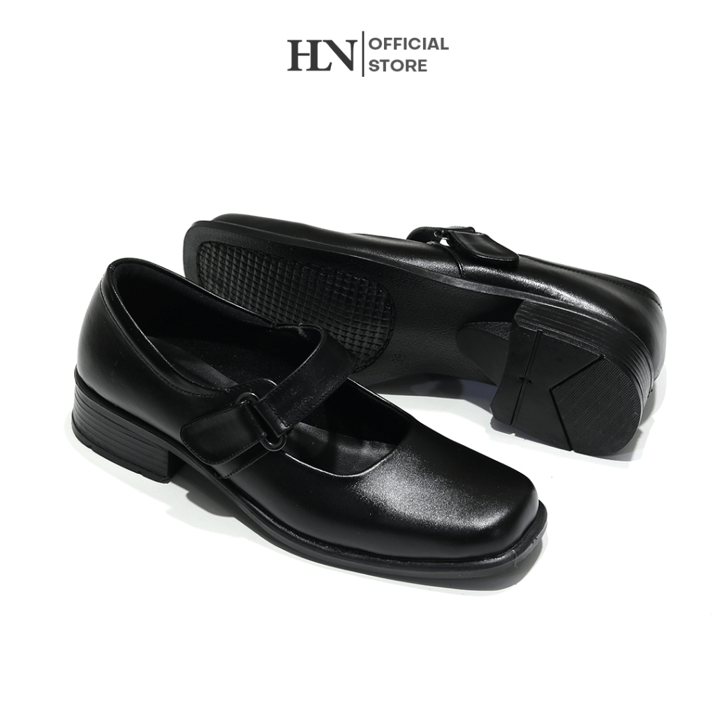 HLN Sepatu Pantofel Paskibra Wanita Tali Perekat Bahan Kulit Sapi Asli Tinggi 3cm Ukuran 36-43