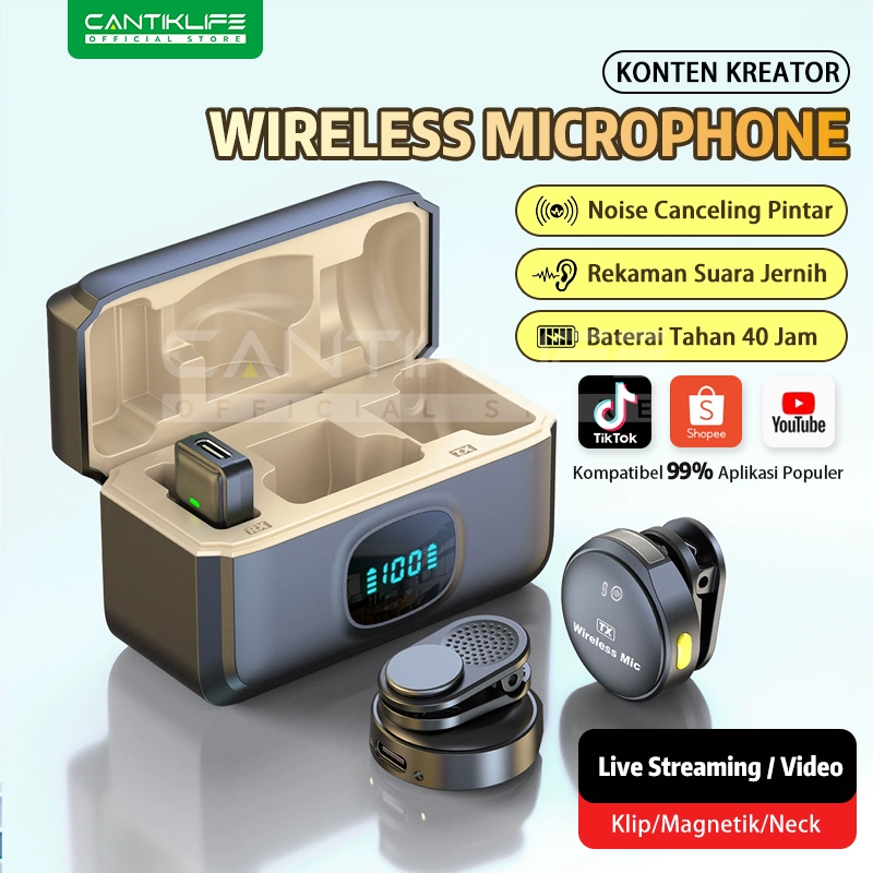 Mikrofon Wireless 2 in 1 Desain Clip-On Mikrofon untuk Ponsel Peralatan Rekaman/Live Streaming Pengurangan Noise untuk P
