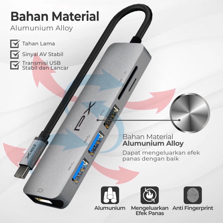 Type C 3.1 to HDMI Hub Converter USB Micro SD Card 6 in 1 PX UCH160
