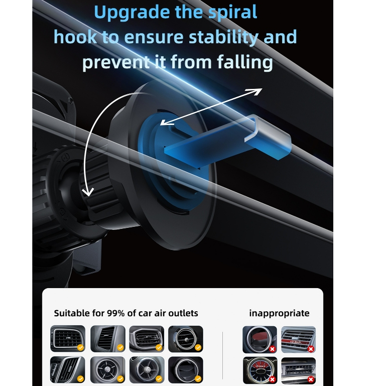 DWINR Car Holder Magsafe Phone Holder Wireless Charging 15Watt Automatic Rotating 90degree Rotasi Otomatis