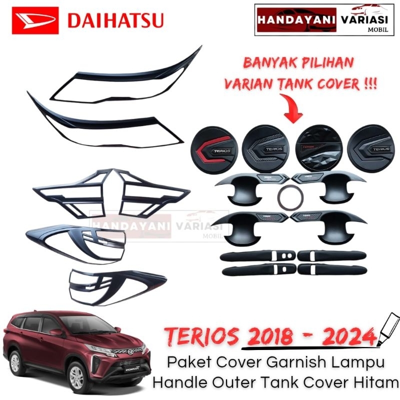 TERLARIS Paket Hemat Daihatsu New Terios 2018 2024 Cover Garnish Lampu Handle Outer Pintu Tank Cover Hitam