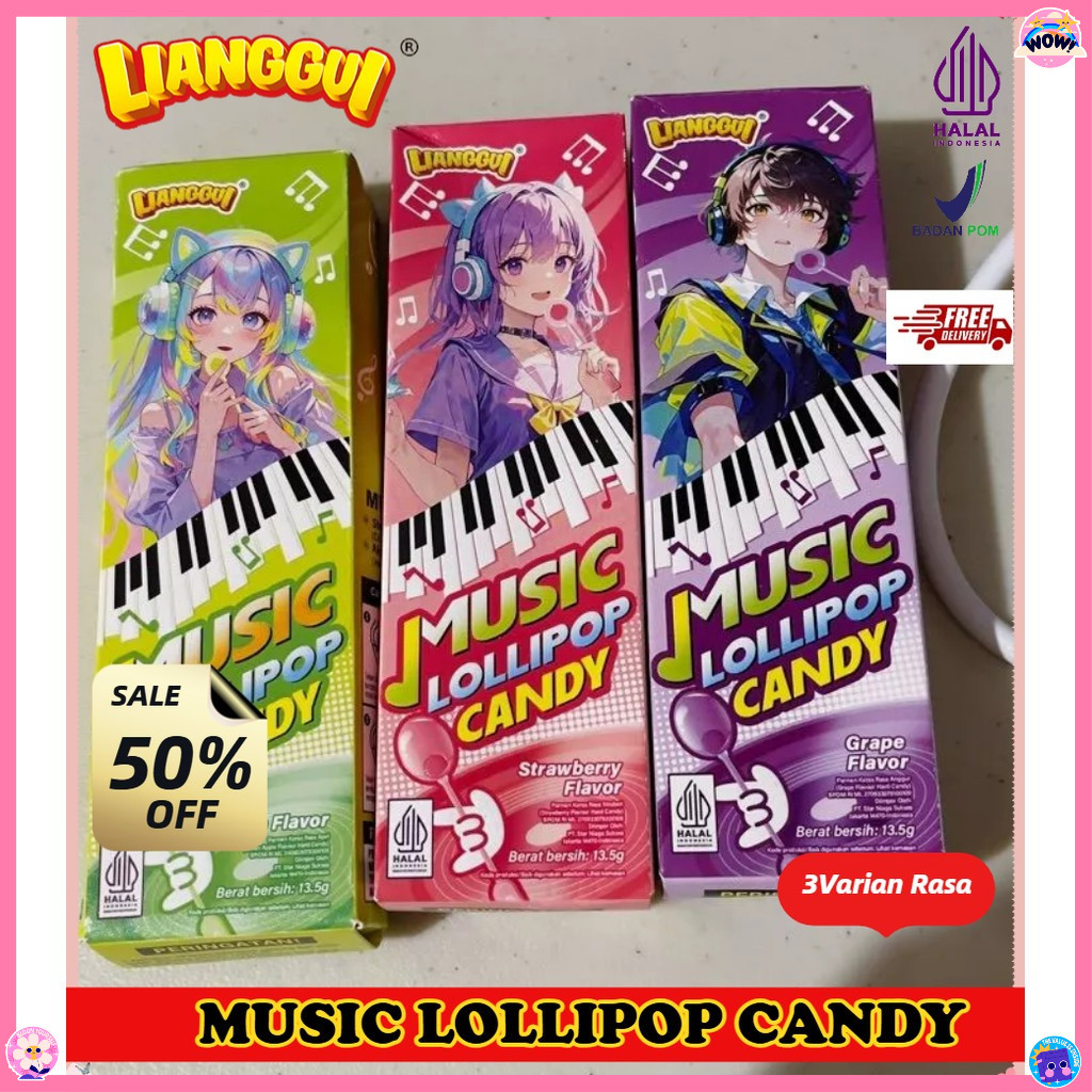 Ready- [Terlaris di semua platform] Halal Lianggui - Permen Lolipop Musik 3 Rasa Apel Stroberi Anggur Halal Cemilan Viral Anak Kantor Murah-Hadiah anak [Stok tersedia, tidak perlu menunggu]