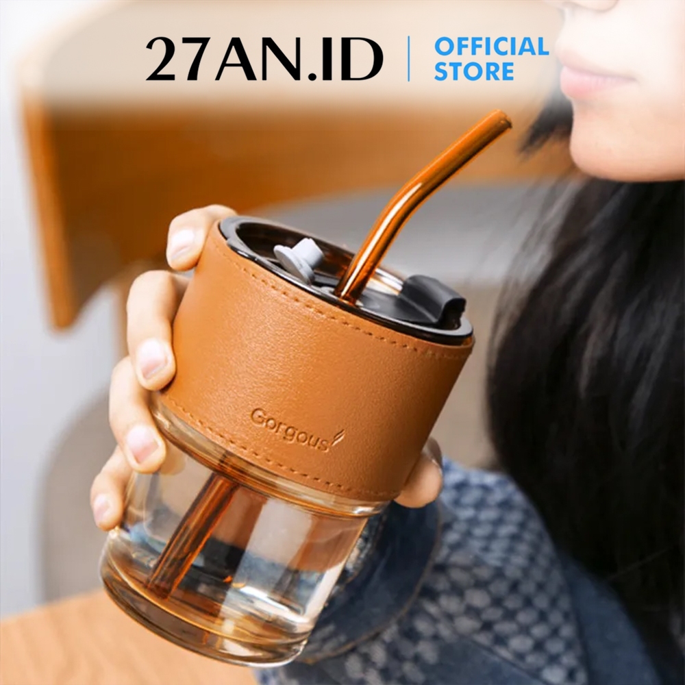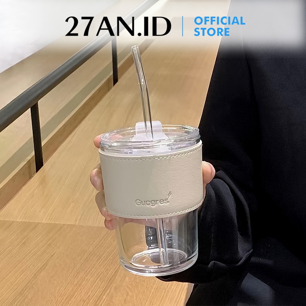 Botol Minum 27Anid Kaca Aesthetic Gelas Tumblr Sedotan Tutup Vintage