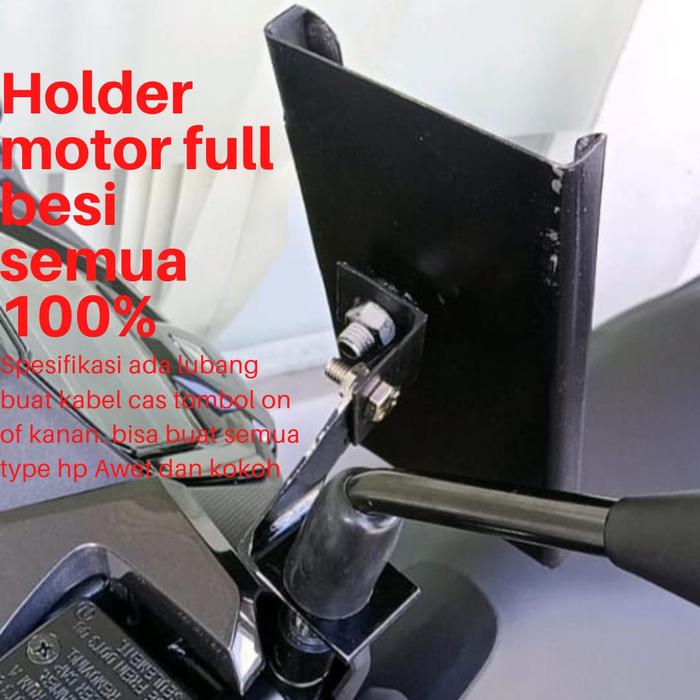 DIJAMIN ORI ! HOLDER HP SEPEDA MOTOR BESI - HOLDER HP MOTOR BESI, HITAM LARIS