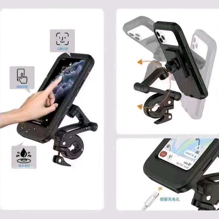 DIJAMIN ORI ! PHONE HOLDER MOTOR WATERPROOF TEMPAT DUDUKAN HP SEPEDA MOTOR ANTI AIR HOLDER HP OUTDOOR MOTOR LARIS