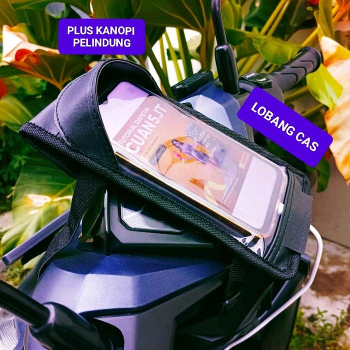 DIJAMIN ORI ! HOLDER HP MOTOR ANTI AIR DENGAN KANOPI DAN LUBANG CAS COCOK UNTUK PENGENDARA MOTOR LARIS