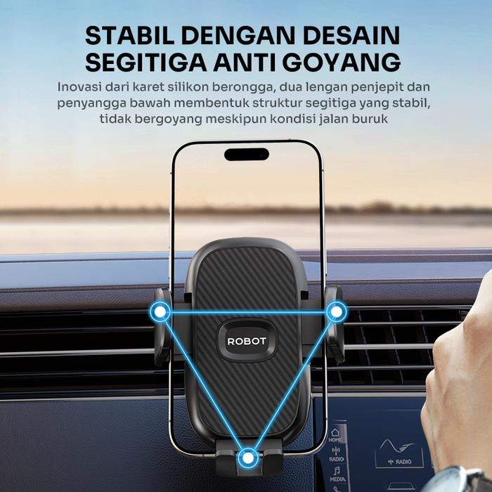 DIJAMIN ORI ! ROBOT CAR HOLDER RT-CH21 BLACK ROTATABLE FOR SMARTPHONE BACKSEAT CAR STAND HOLDER GARANSI 1 TAHUN LARIS