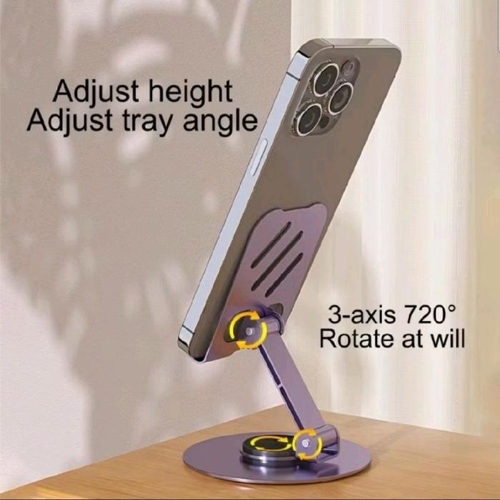 DIJAMIN ORI ! HOLDER HANDPHONE BESI / PHONE STAND HP BESI ALUMINIUM ROTASI 360° / DUDUKAN HP - UNGU LARIS