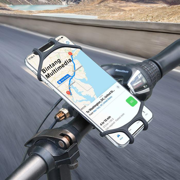 DIJAMIN ORI ! HOLDER HP SEPEDA MOTOR BRACKET DUDUKAN HANDPHONE SILIKON ELASTIS P019 - HITAM LARIS