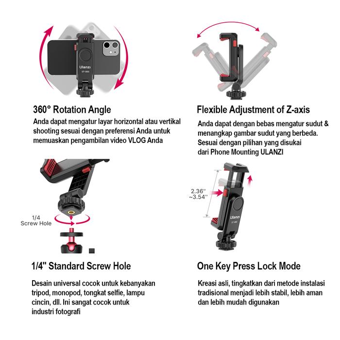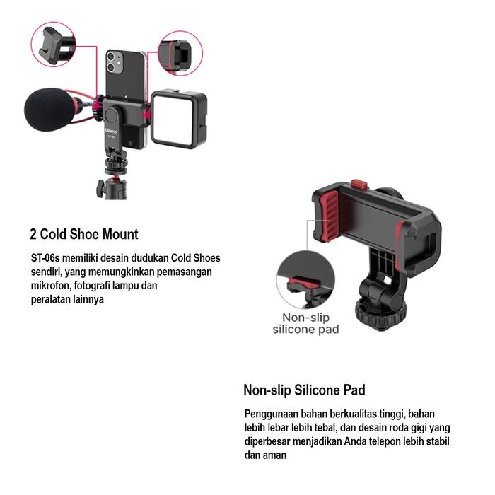 DIJAMIN ORI ! ULANZI ST-06S MULTIFUNCTIONAL SMARTPHONE PHONE HOLDER WTIH COLD SHOE BLACK LARIS