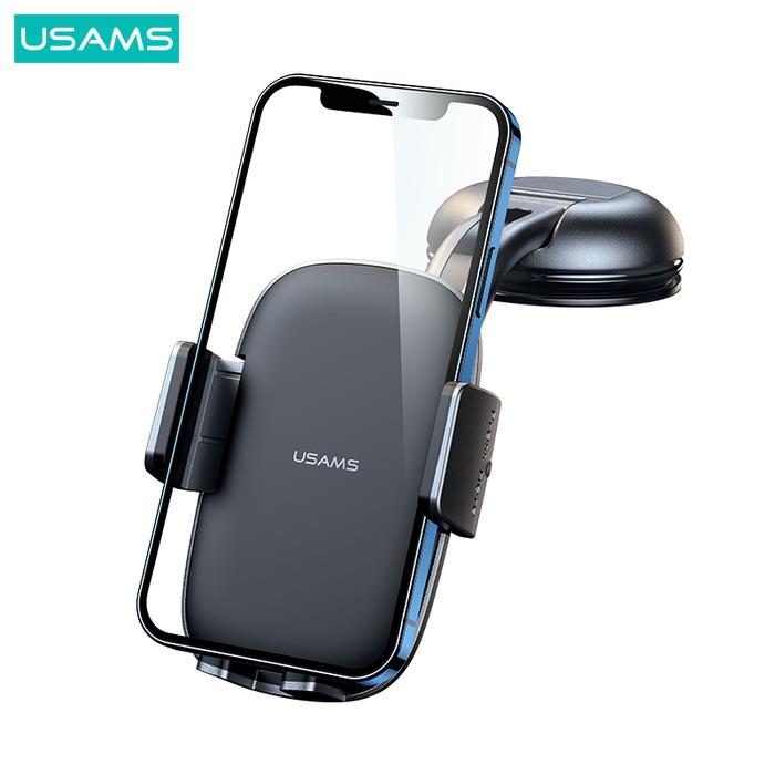 DIJAMIN ORI ! USAMS ZJ063 CAR HOLDER CENTER CONSOLE RETRACTABLE PHONE HOLDER MOBIL - HITAM LARIS