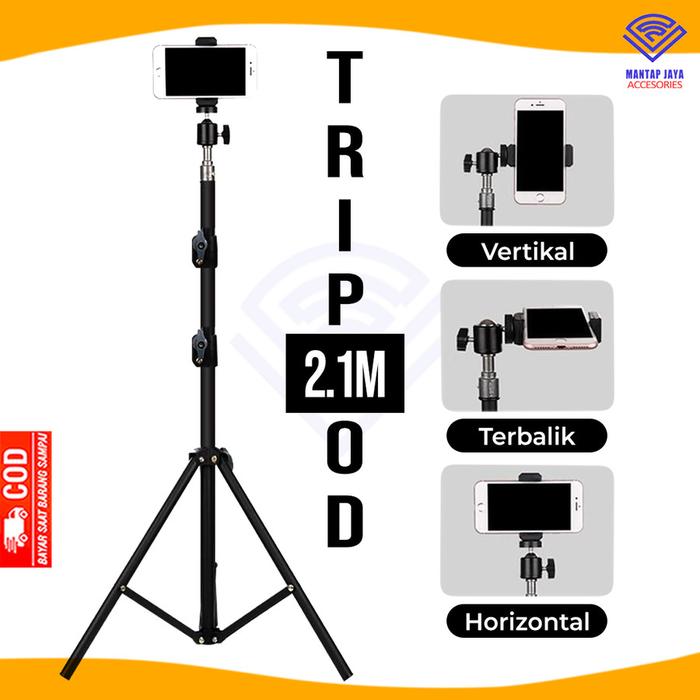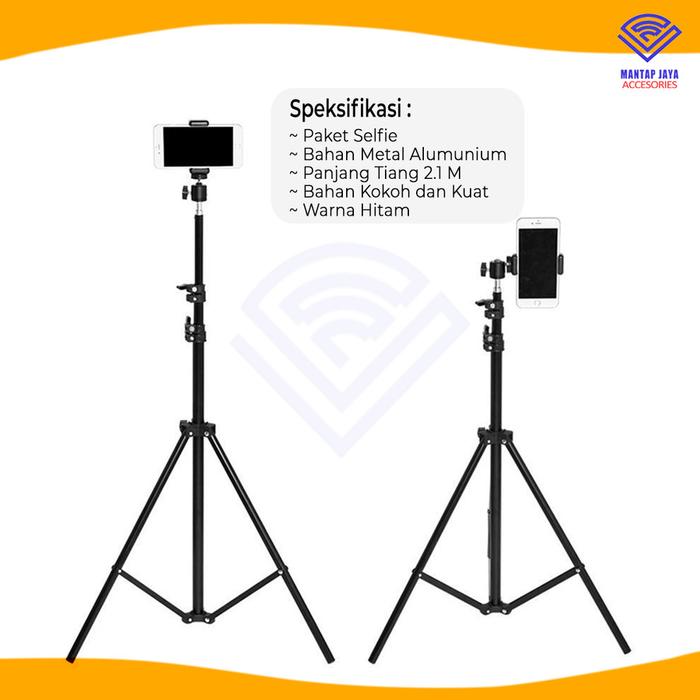 DIJAMIN ORI ! [] TRIPOT TRIPOD 2.1M PHONE STAND HOLDER HP PAKET SELFIE LARIS