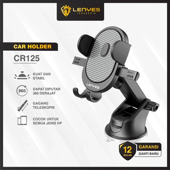 DIJAMIN ORI ! LENYES CR125 CAR PHONE HOLDER UNTUK DASHBOARD ATAU KACA MOBIL KUAT KOKOH ORIGINAL - HITAM LARIS