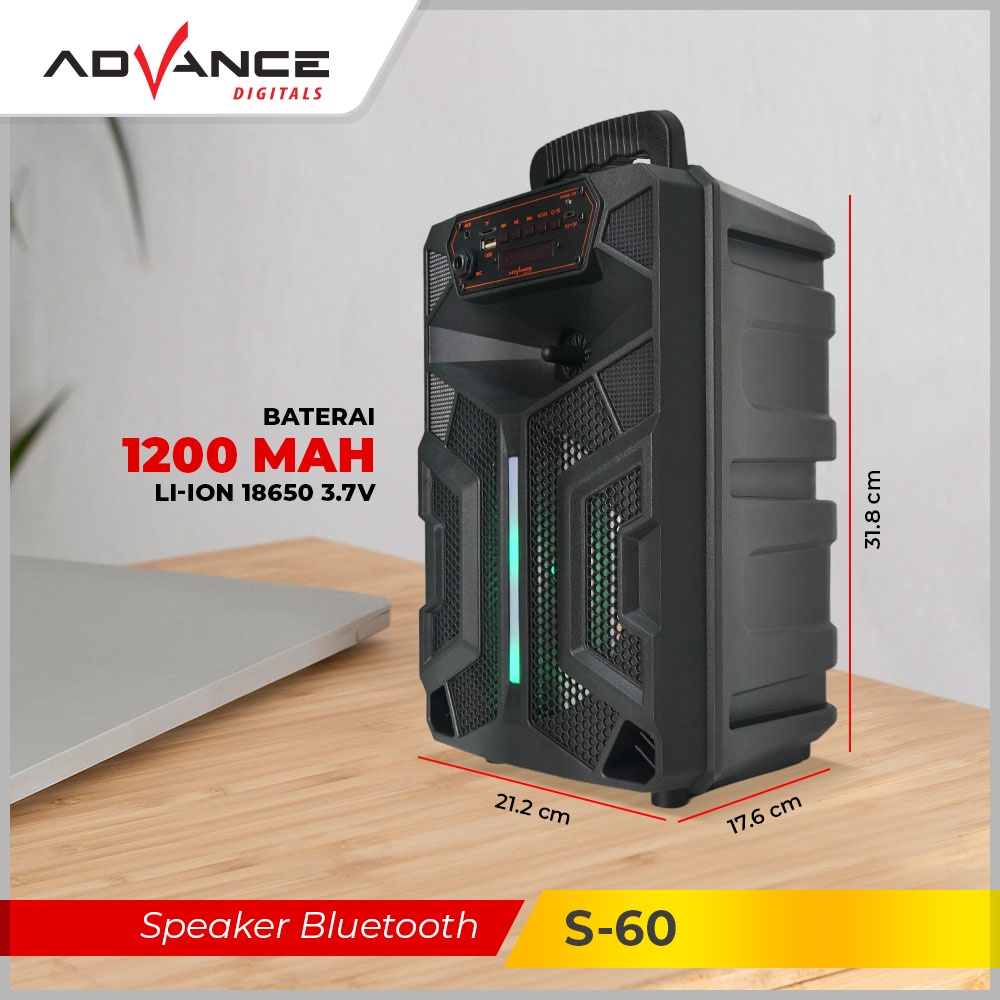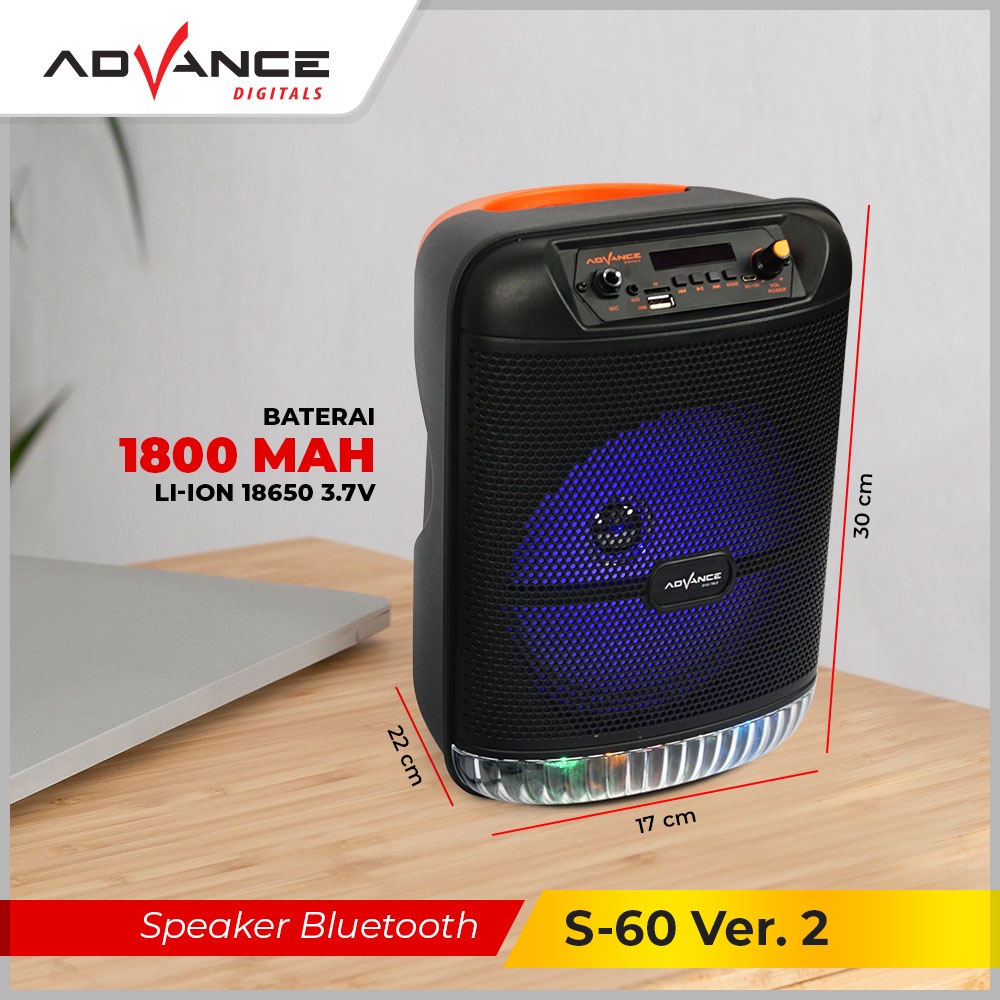 Advance S-60 Speaker Bluetooth Music & Karaoke 8inch Free Mic / speaker advance / speaker karaoke / speaker jbl
