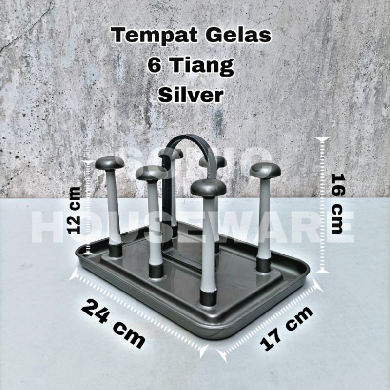 Rak Gelas Stand Glass 6 Tiang Segi Gantungan Tatakan Cangkir Plastik Palembang