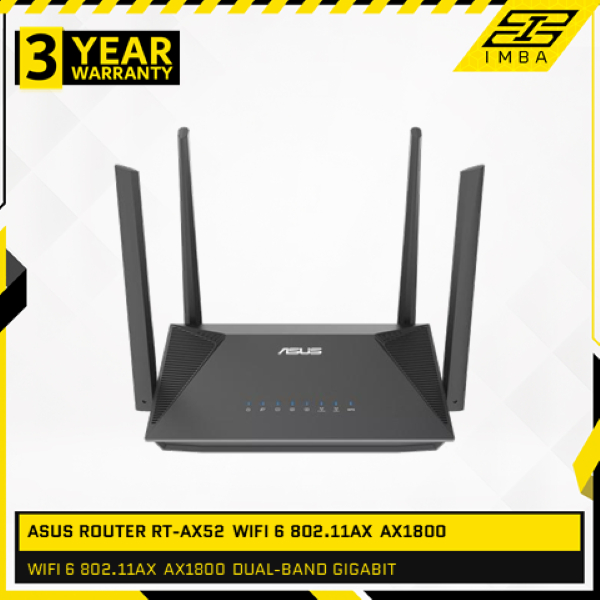 ASUS ROUTER RT-AX52 WIFI 6 802.11AX AX1800 DUAL-BAND GIGABIT BLACK
