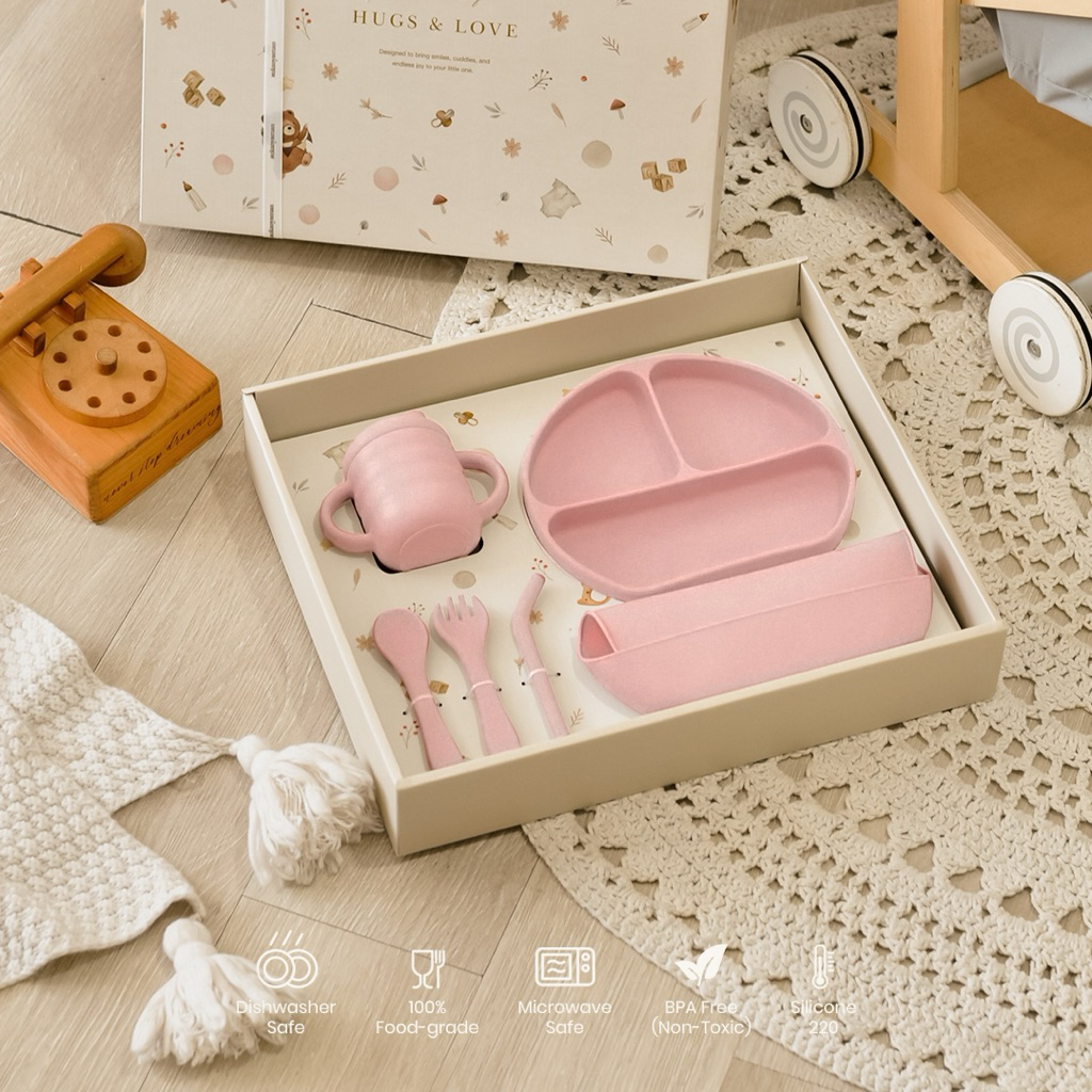 [NEW] Silicone Complete Set Gift Set | Alat makan silicone bayi | Baby Gift Set alat makan bayi silicone BPA Free