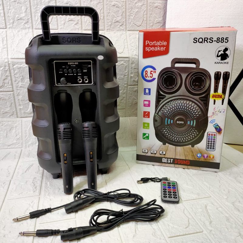 Speaker Bluetooth SQRS-855Max With Free 2mic Portable Karaoke Speaker 8,5inchi Karaoke Bluetooth TWS Nirkabel
