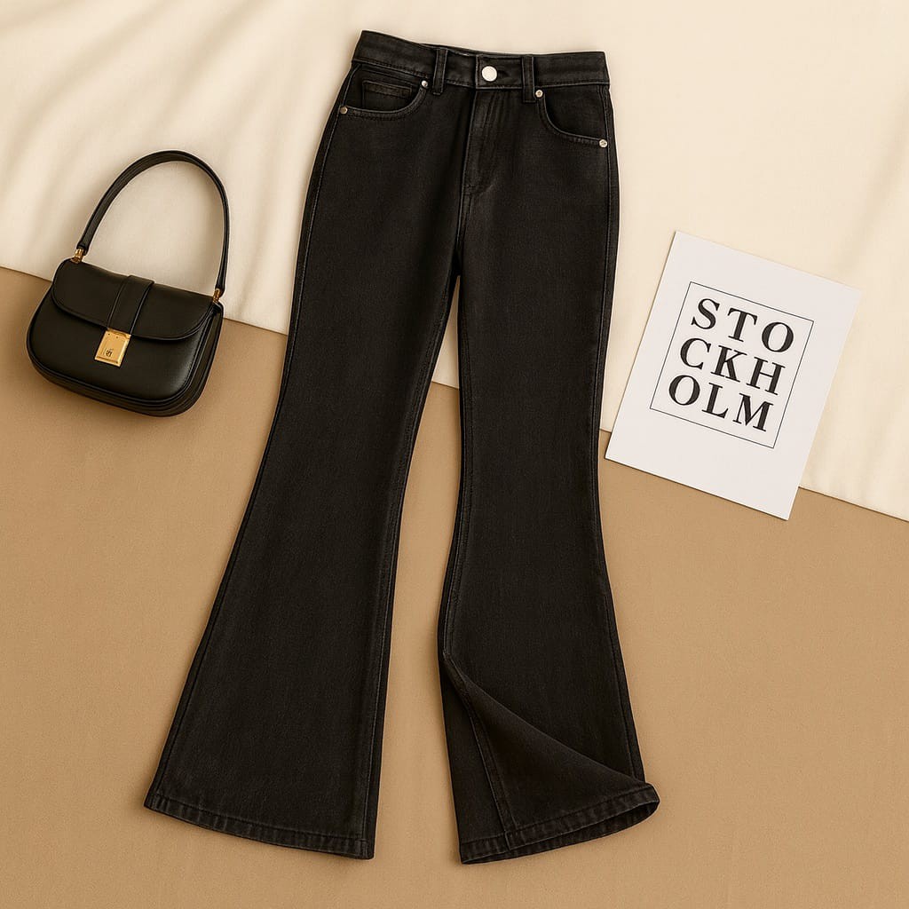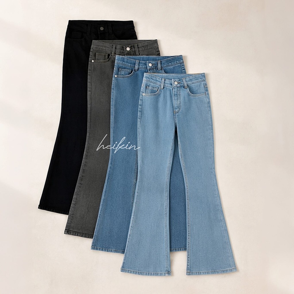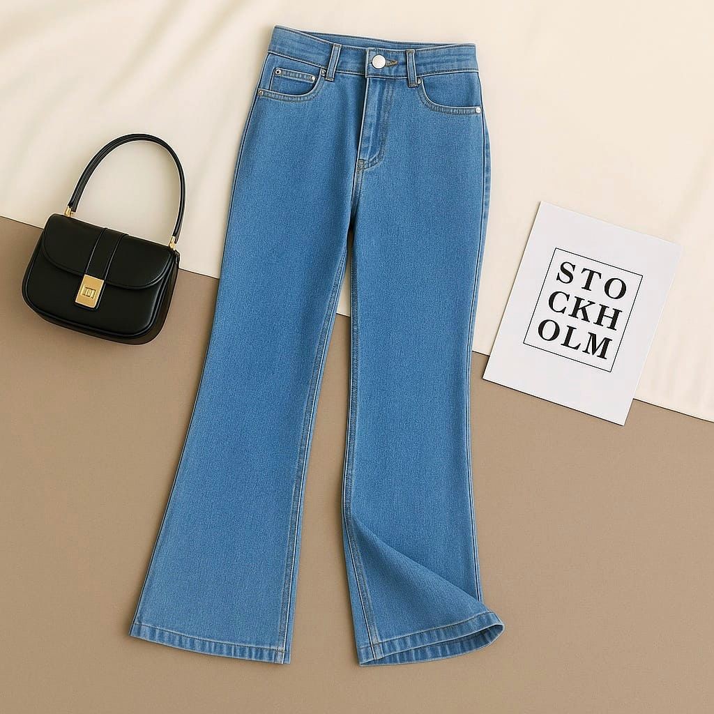 BELVA Celana Panjang Jeans Cutbray Highwaist Remaja Dewasa Bahan Stretch Tebal Polos Korean Style