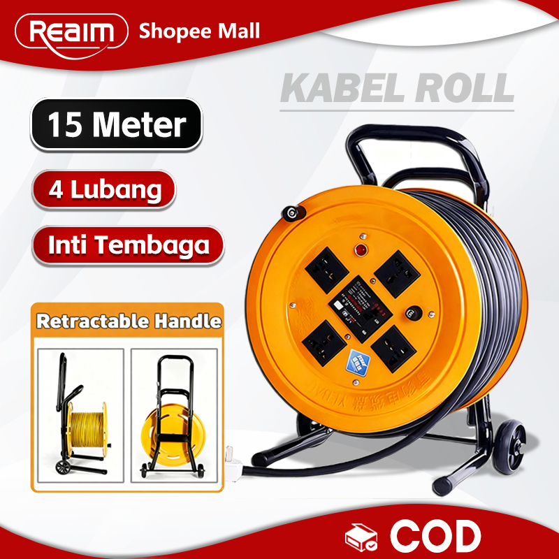 Reaim 15M Kabel Roll Kabel Saklar Kabel Meter 4 Lubang Kabel Bok Colokan Listrik Premium KUNINGAN SNI Switch