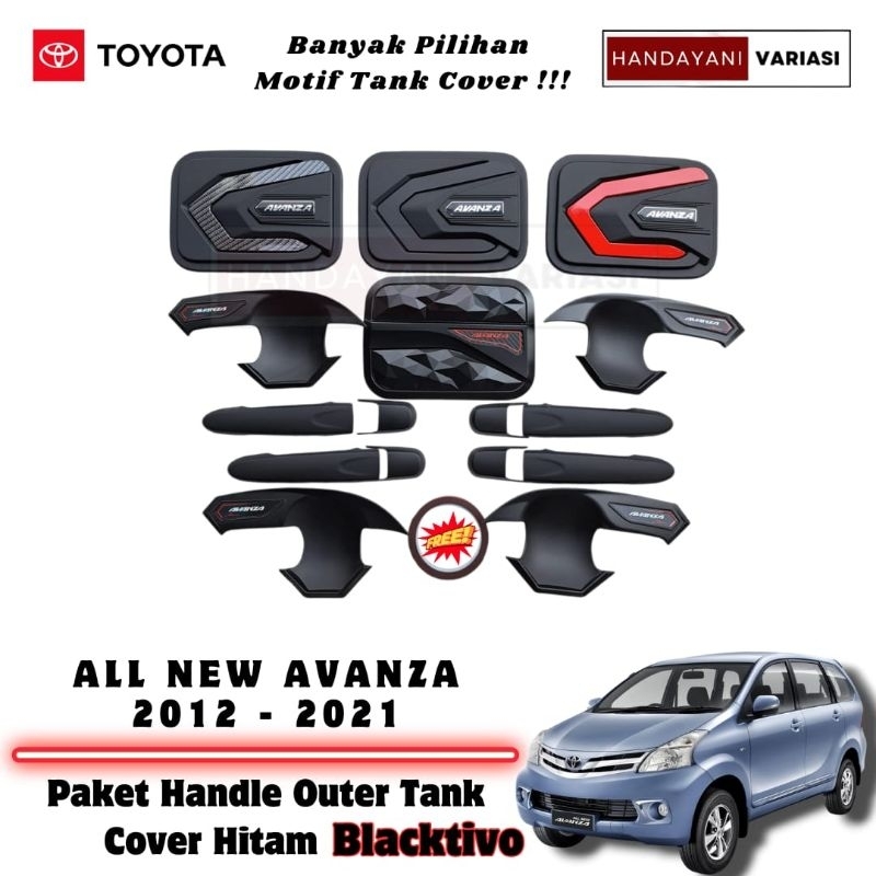 TERLARIS Paket Cover Handle Outer Pintu Tutup Tangki Blacktivo Toyota All New Avanza 2012 2021 Hitam Doff