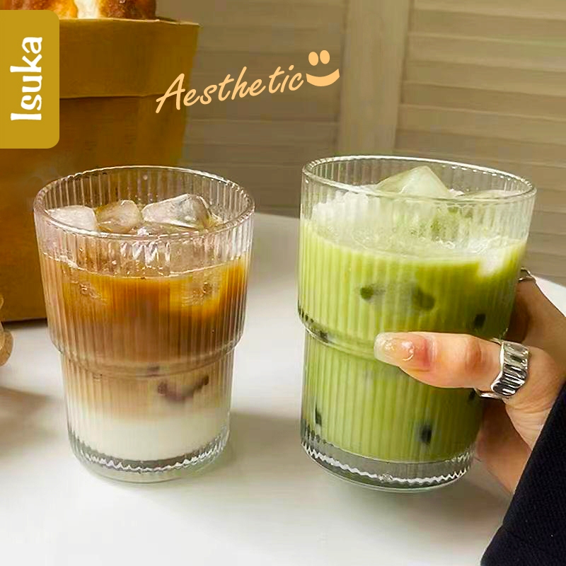 Gelas Minum Kopi Matcha Estetik Aesthetic Coffee Mug Glass Bening