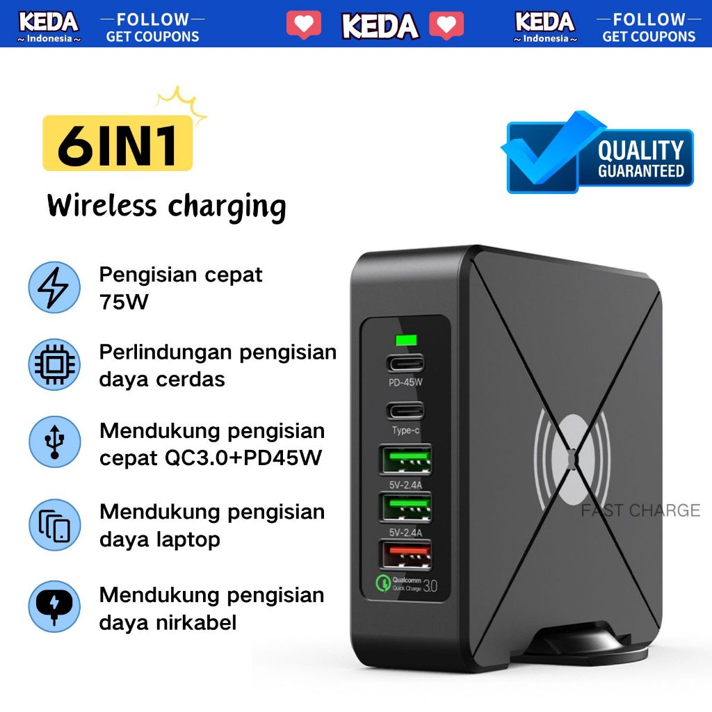 75W USB C Fast Charger Wireless Charger 5-Port Desktop PD 45W Charging Dock Hub USB C Laptop Power Adapter, Compatible w