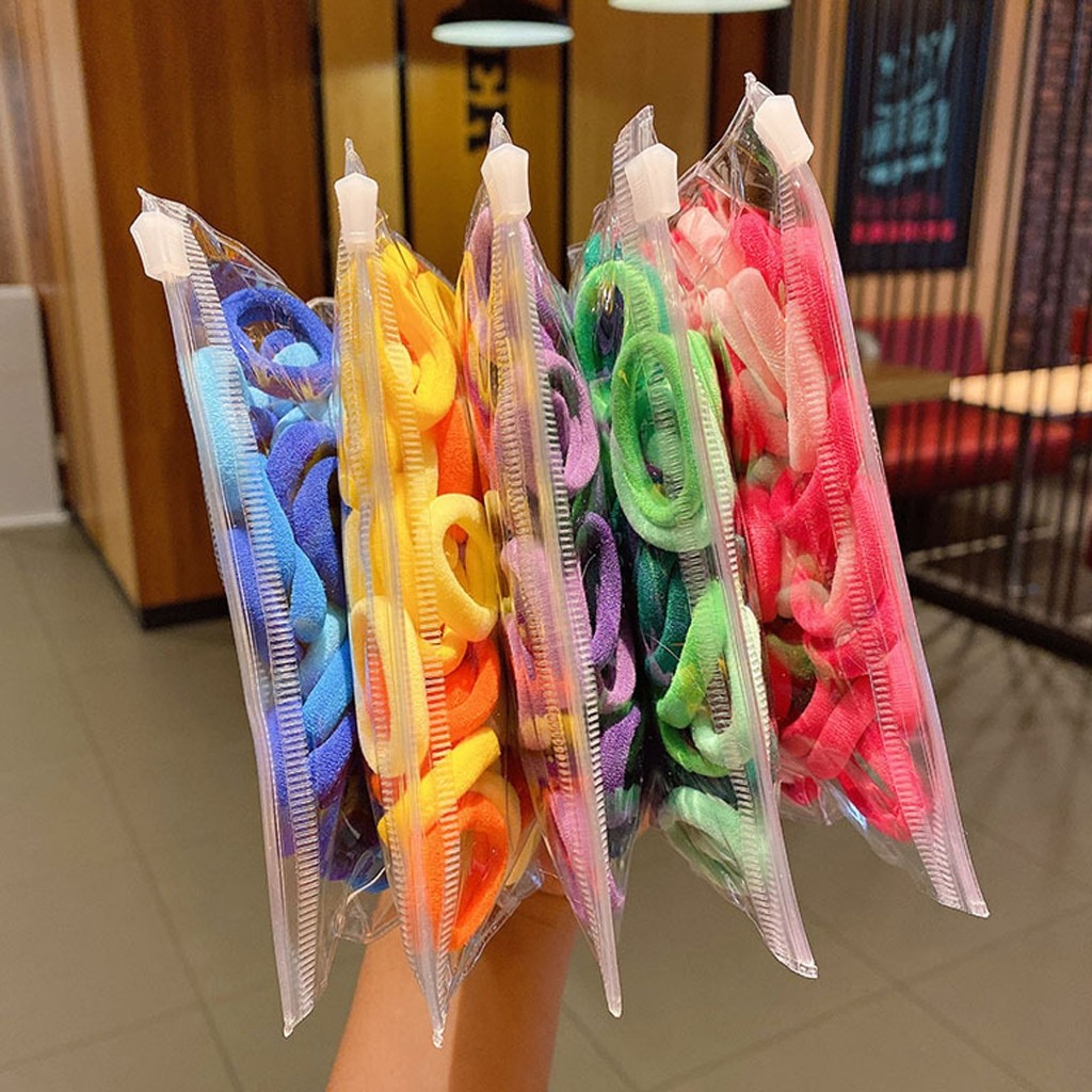 [PROMO] Karet Rambut Perempuan Donat Polos Isi 50 PCS GERATIS POUCH Kunciran Rambut Anak Warna Warni Ikat Rambut
